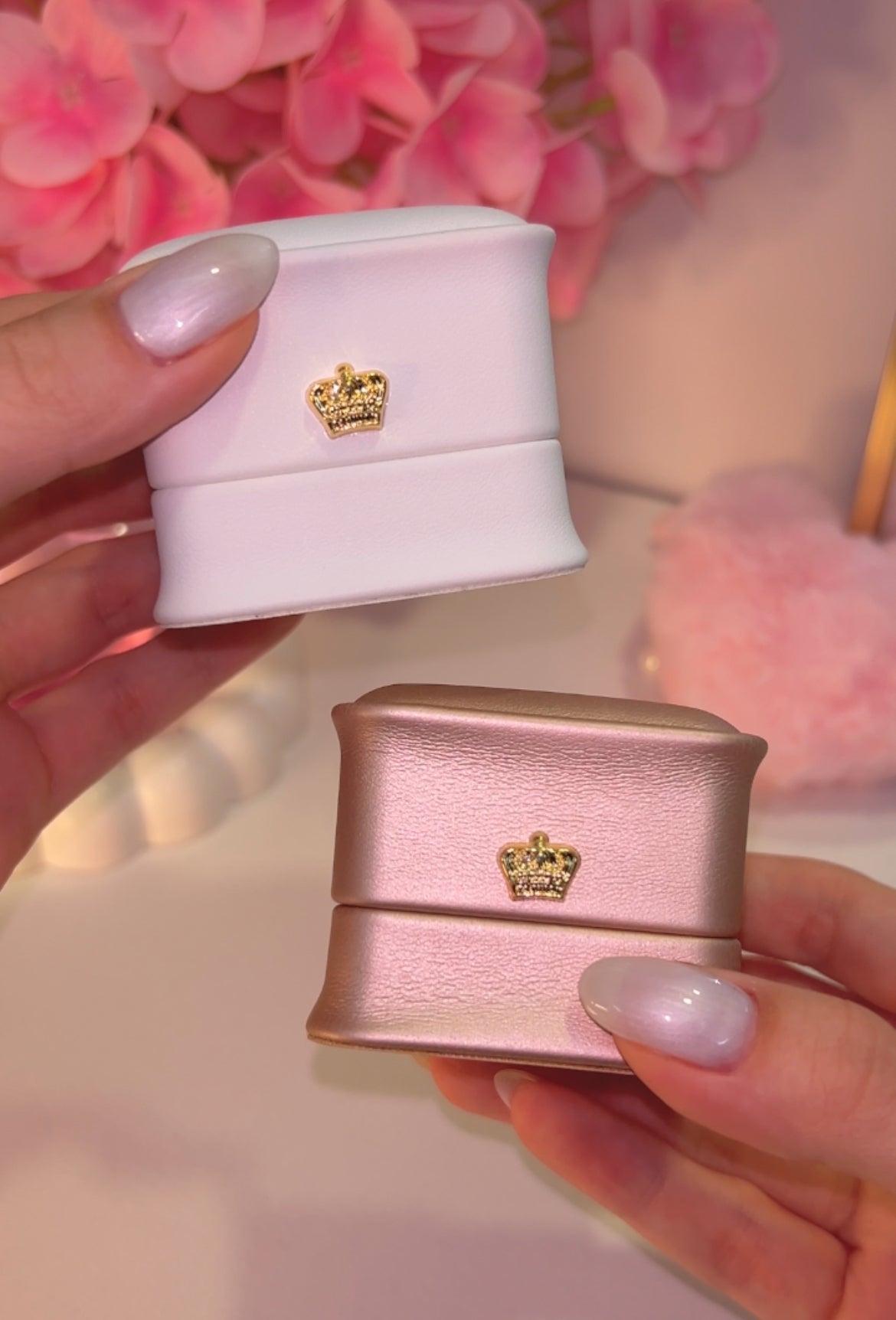 Tus piezas serán empacadas en nuestras cajitas con esponja certificadas por la FSC o en bolsita de tela, todo dentro de una bolsa de papel con lazo. ¡Perfecto para tu regalito!